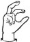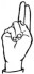На ћирилици написано НОВАК БУЗГАНОВИЋ састоји се из 15 слова [?]. Исписано ћириличном једноручном азбуком за глувонеме: